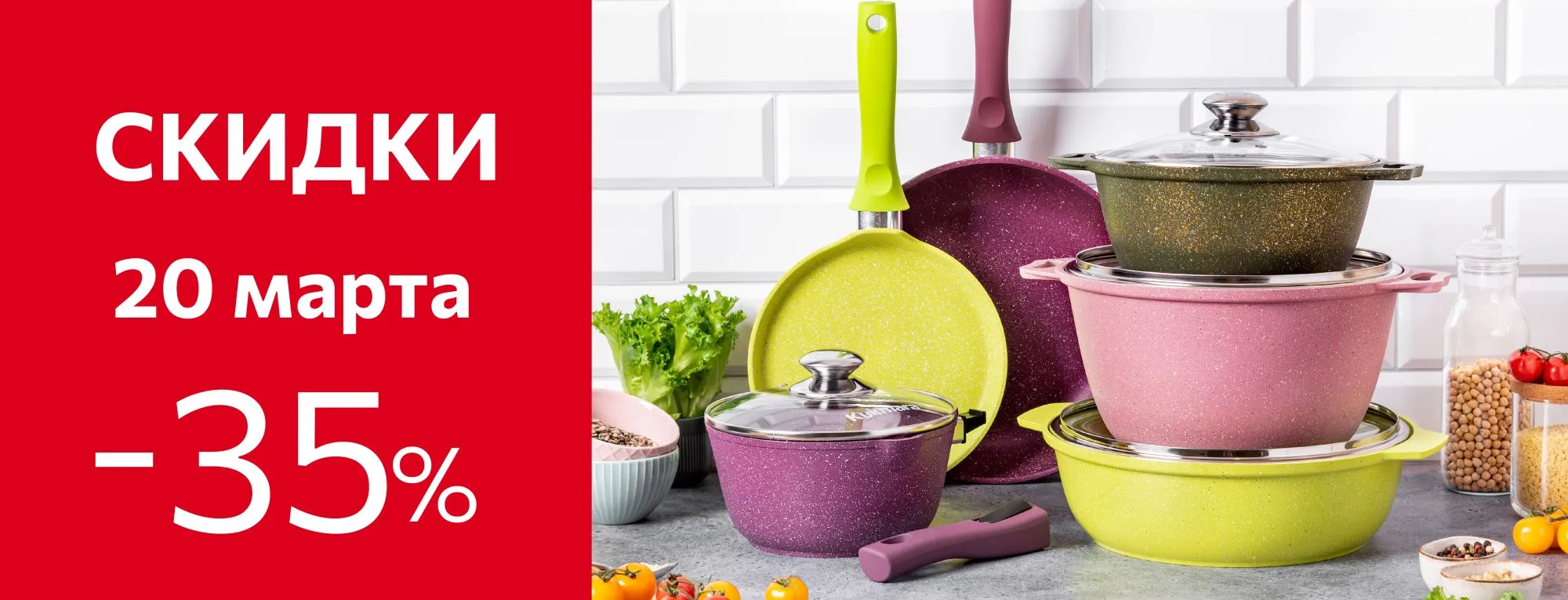 −35% на посуду с антипригарным покрытием линии «Тренд» — стильная и удобная, она добавит ярких акцентов на вашей кухне.
